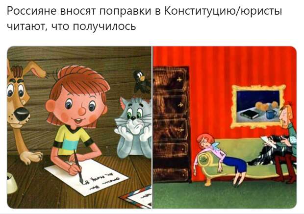 Поправки в Конституцию (Изменения в Конституции) – обсуждение изменений в Конституции РФ в 2020 году. В сети шутят над поправками, предложенными президентом Владимиром Путиным и другими представителями власти. А также предлагают свои, максимально абсурдные и смешные.
